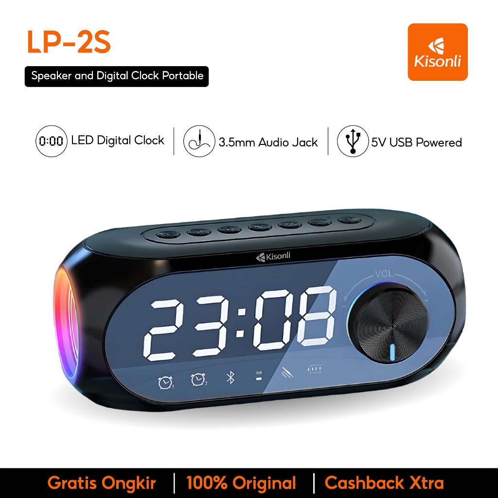 KISONLI Speaker Jam Bluetooth Portable Stereo Original Led Display Alarm LP2S musik box terbaru full bass
