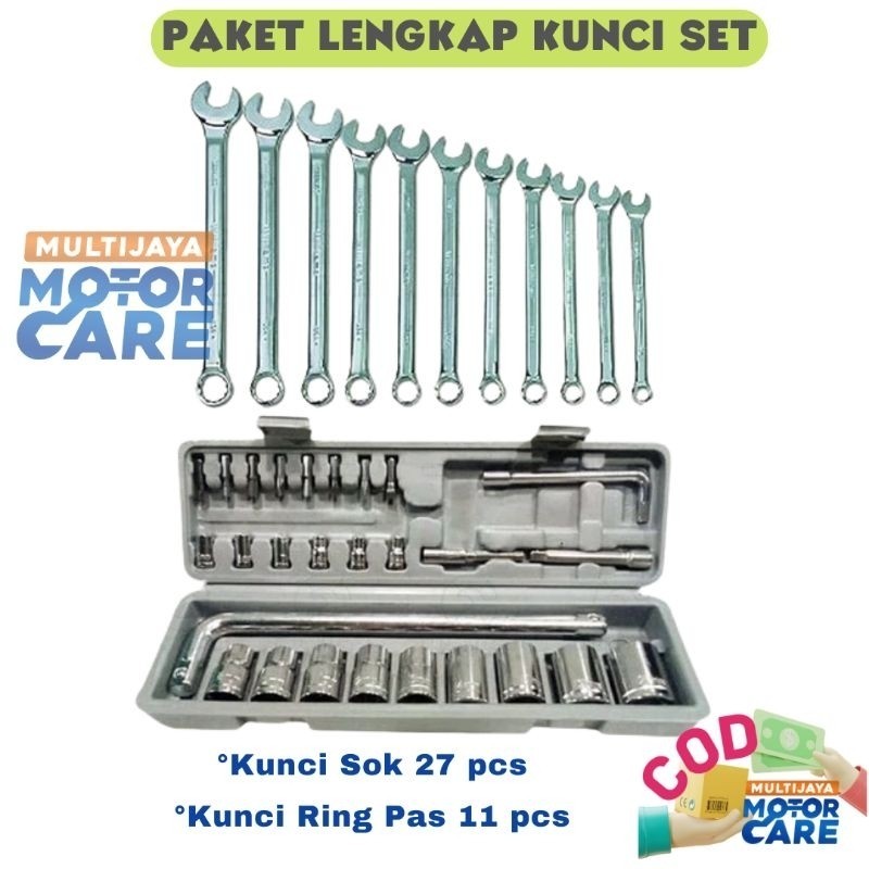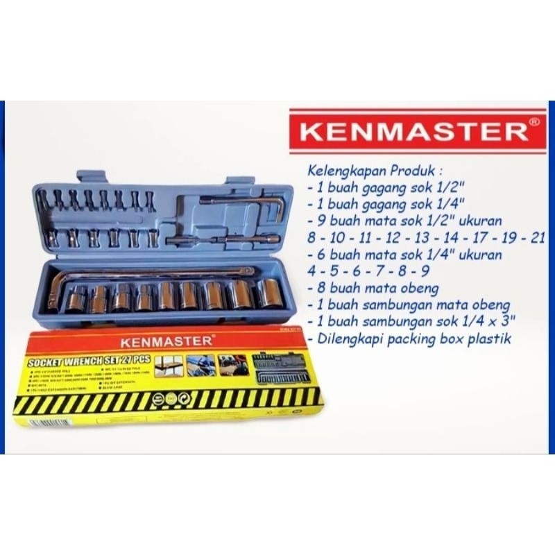 TERLARIS SET PROMO PAKET LENGKAP Kenmaster Kunci Sok 27 Pcs + Kunci Sock T 4 pcs set ( 8 , 10 , 12 , 14 mm ) Kunci Ring