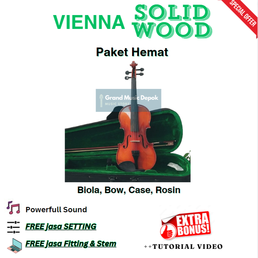 Paket Belajar Biola Vienna SOLID WOOD + OPSIONAL (Shoulder rest + Clip Tuner)