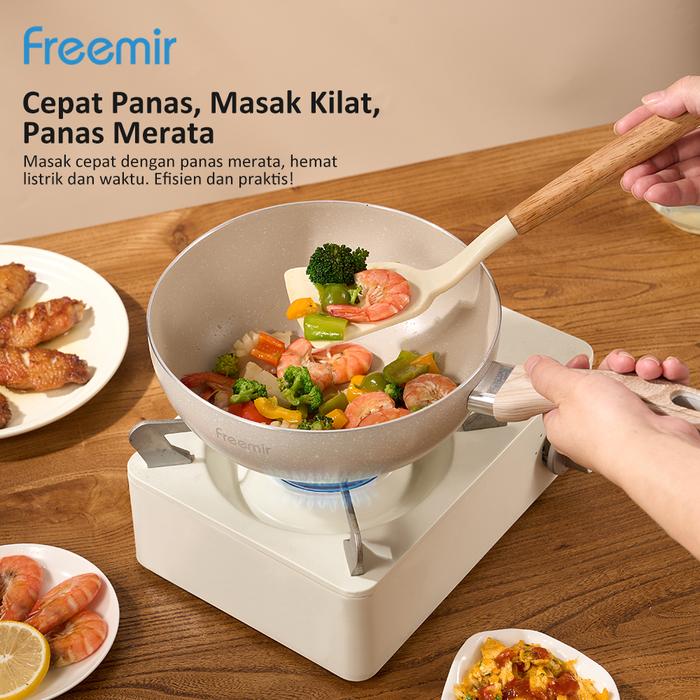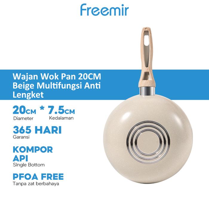Promo Wajan AF PO 24 SEPT freemir Wajan Cekung Beige 20 cm Penggorengan PFOA Free Batu Granit Anti