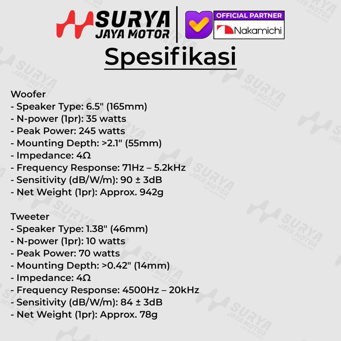 Nakamichi NSF-CS 623 speaker split 6.5 Inch 2-way 315W 35W RMS Speaker Audio Mobil NSFCS1623