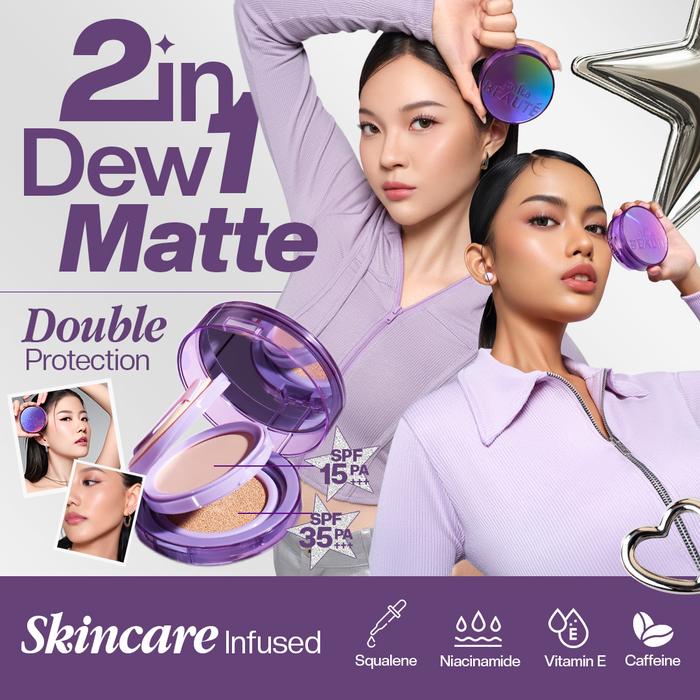 Kaila Beaut 2in1 Dew Matte Cushion - Dewy Matte Finish Double SPF 15 & 35 PA+++ Niacinamide Medium