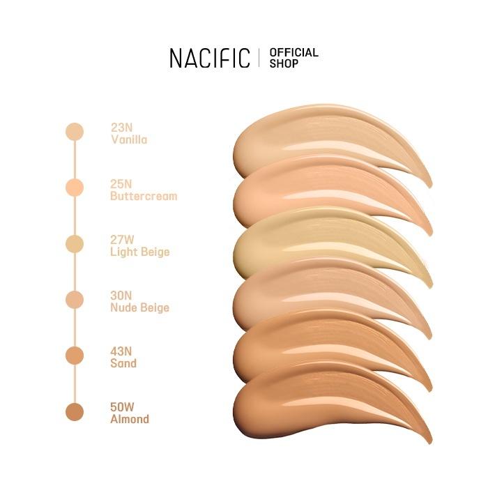 23N Vanilla, 25N Buttercream, 27W Light Beige, 30N Nude Beige, 43N Sand, 50W Almond