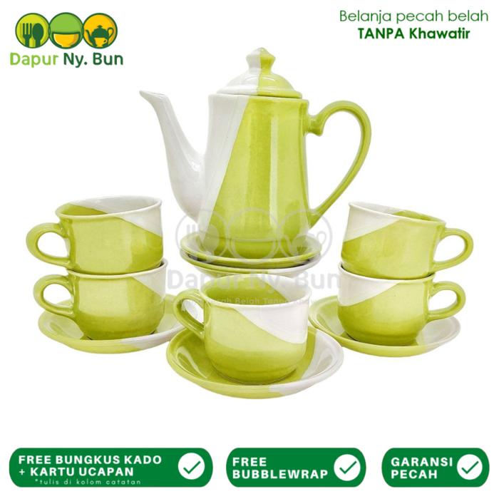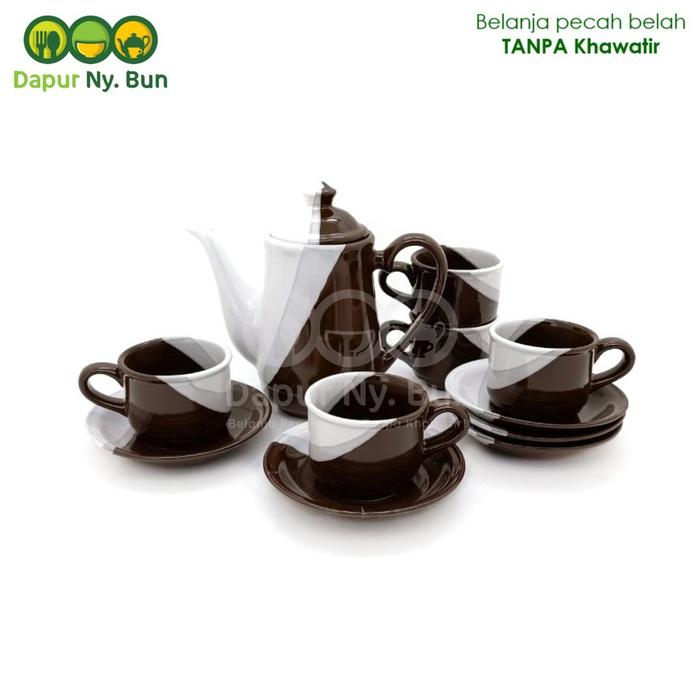Teko Set Two Tone Nikura Keramik 1 Teko 5 Cangkir 5 Tatakan