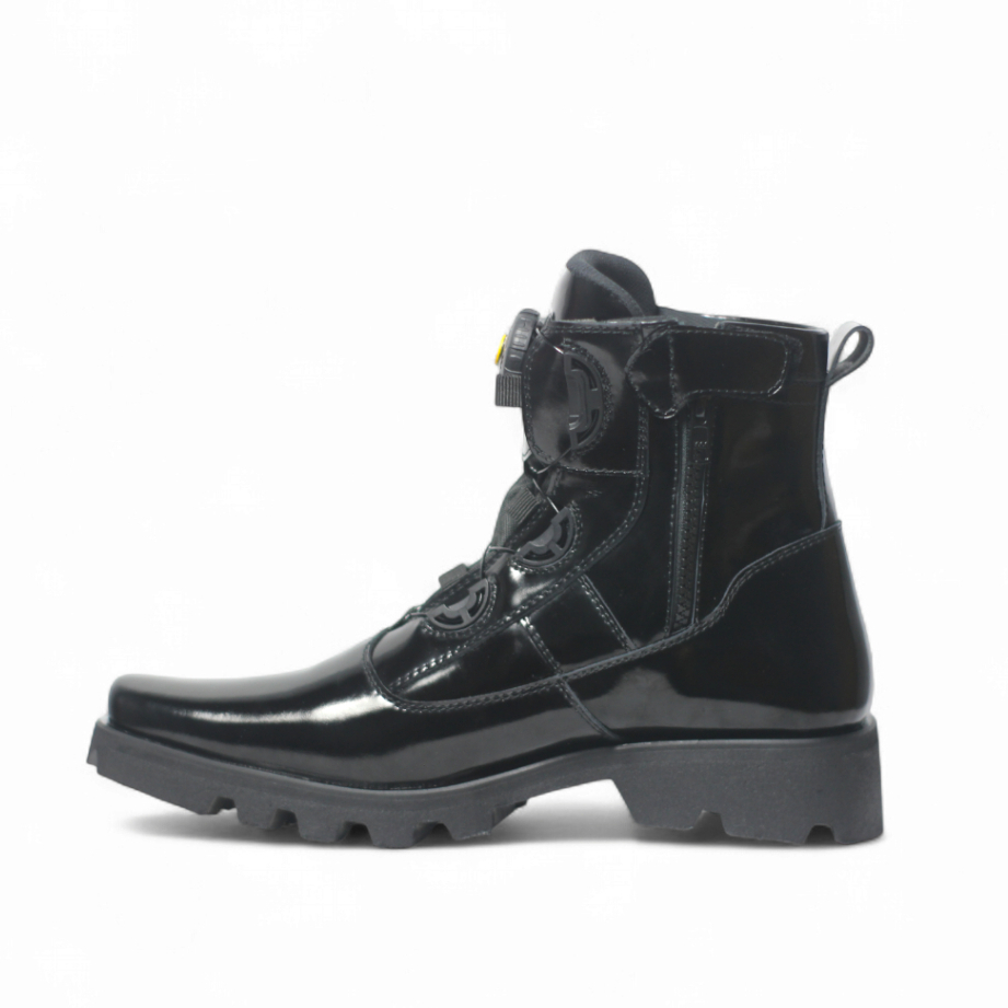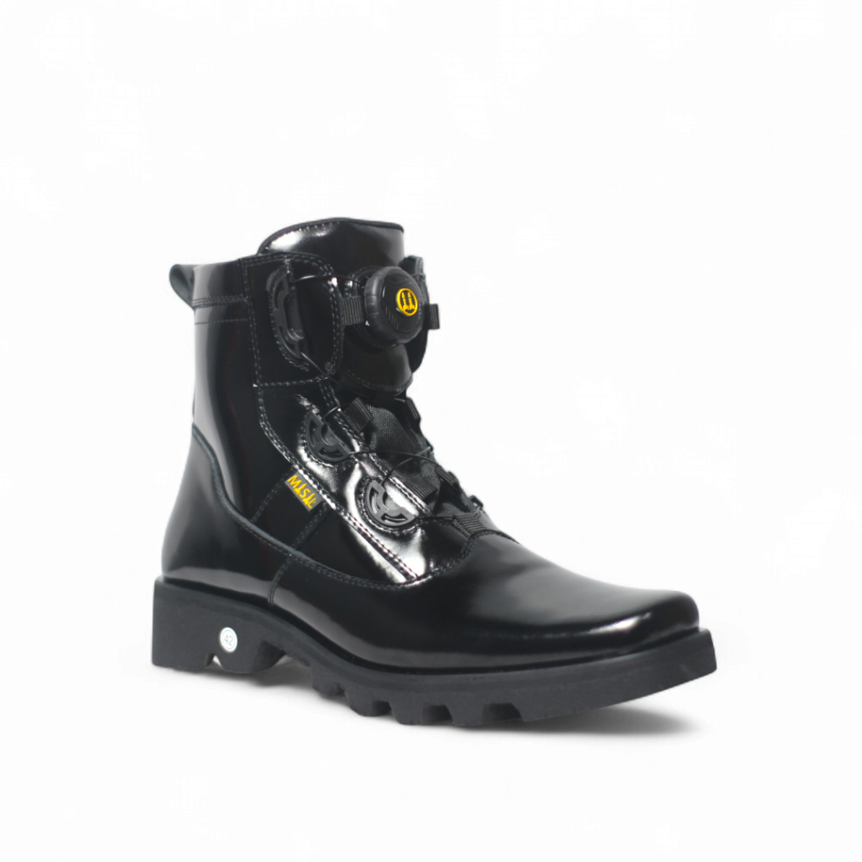 Sepatu PDH Misil Tali Putar TNI Polri Security Satpam Kulit Sapi Asli Phantom HItam Kilap/Glossy