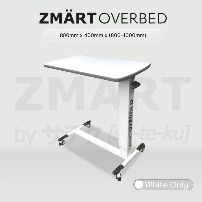 ZMART OVERBED (Table Top: 800x400 mm) Adjustable Height Portable Overbed Hospital Table