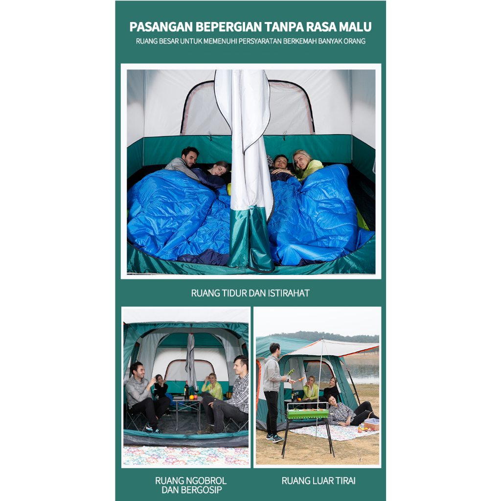 [Mall] Tenda Camping EBUY Tenda Camping Outdoor 2 Ruangan 8-12 Orang Waterproof Besar Tenda Lipat Keluarga Terlaris