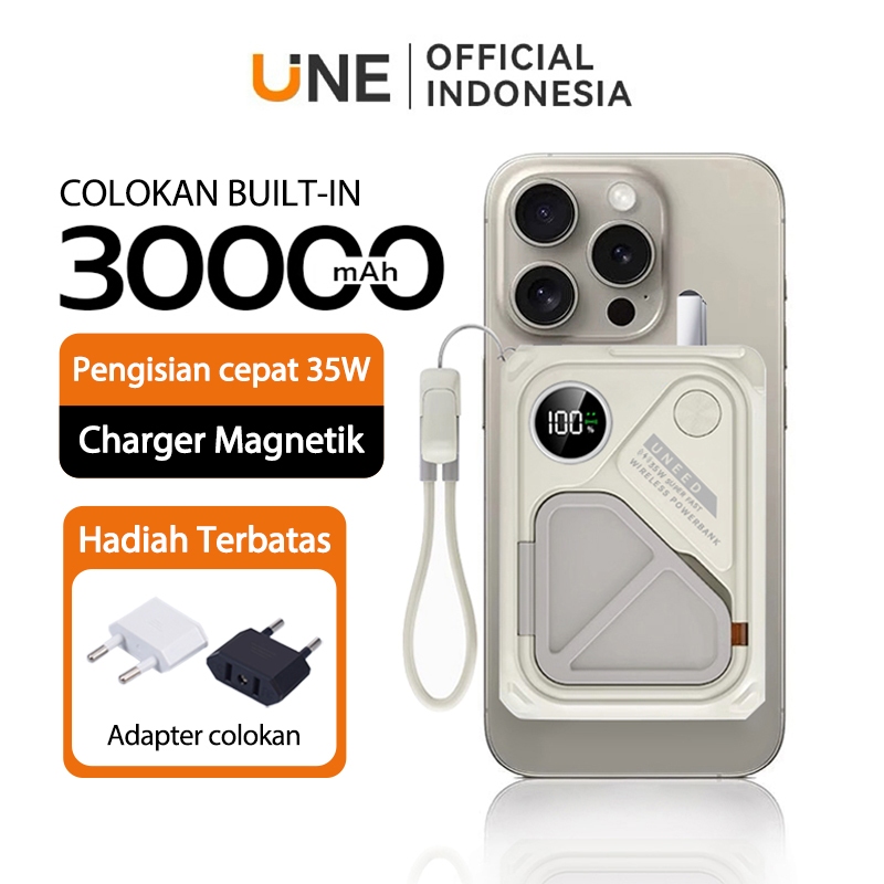Garansi 2 tahun UNE Powerbank Fast Charging Mini Wireless Magnetic 30000/20000mah Type C PD35W with Plug/Cable