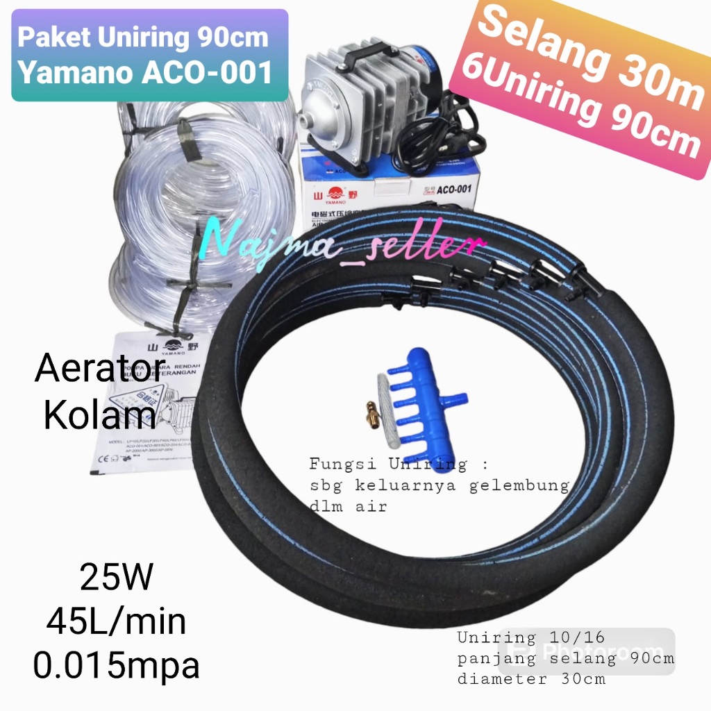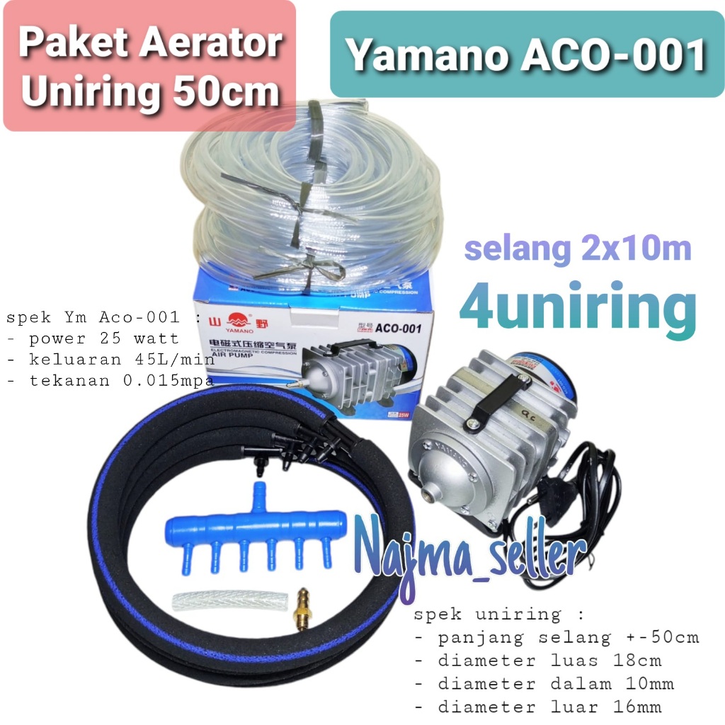 *NAJMASELLER* || Paket Aerator Blower UNIRING, Yamano ACO 001. Selang uniring 90cm dan 50cm. Khusus untuk Kolam ikan dan