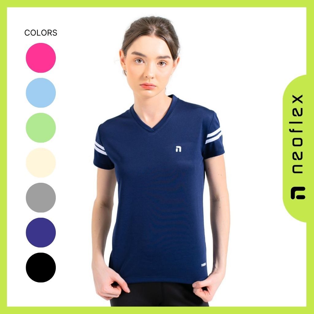 Baju Olahraga Wanita Lengan Pendek Dry Fit Kaos Running Lari Badminton Tennis Voli Gym Cewek Jersey Slim Fit - NEOFLEX