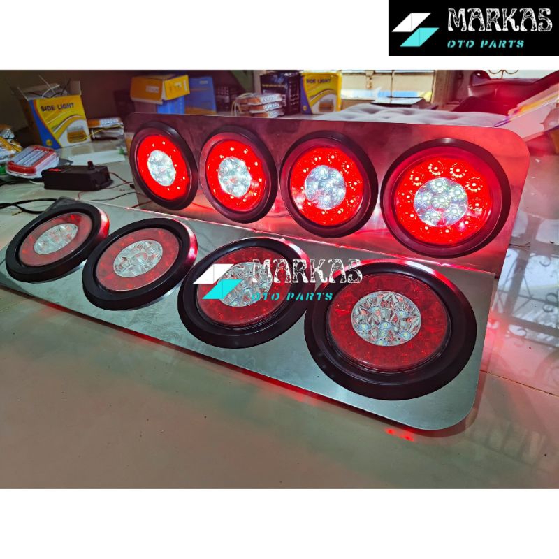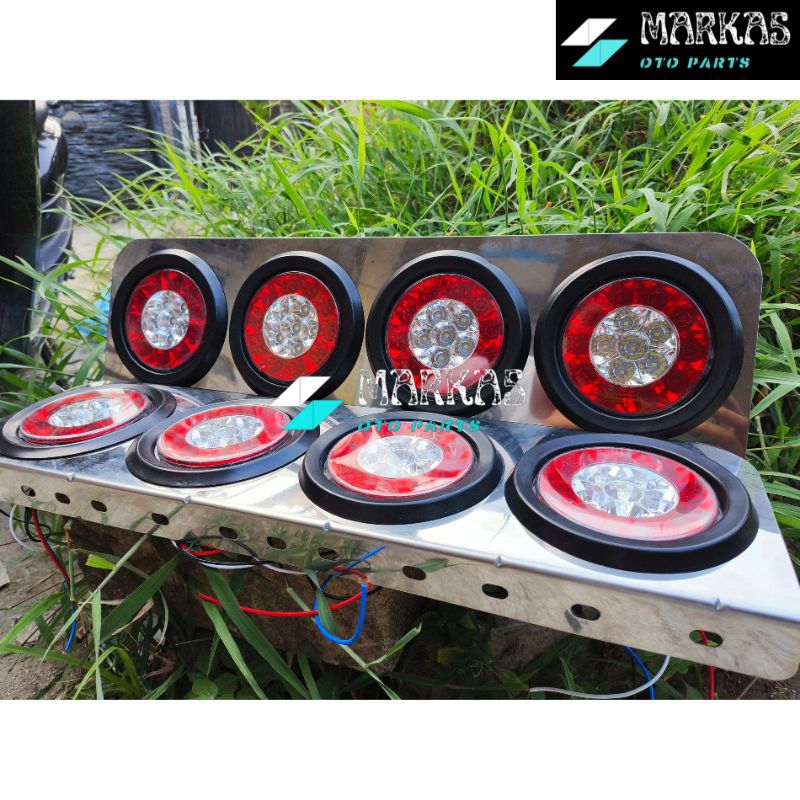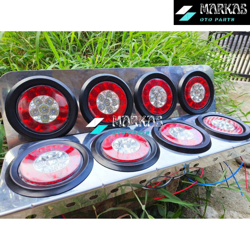 Sepasang Lampu Led Stop Lamp Truck 12volt - 24volt Model 403 / 303 Stainless Merah Putih Lampu Rem Belakang Truk Variasi