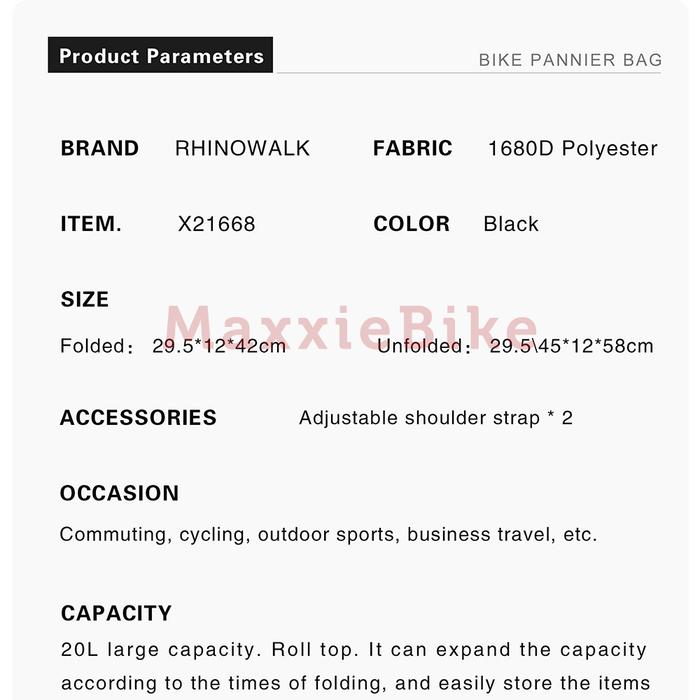 Rhinowalk Tas Sepeda Multifungsi X21668 3 In 1 Bag Bicycle Pannier Backpack 20L