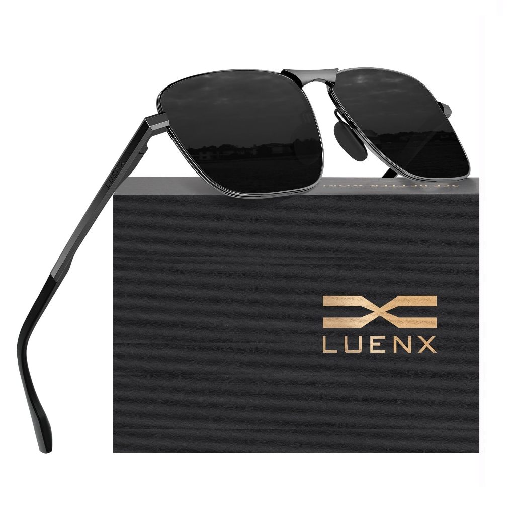 Luenx Kacamata Hitam Rectangular Polarized Aviator Sunglasses Unisex Retro Pilot Shades Driving UV400 Protection 6405-2