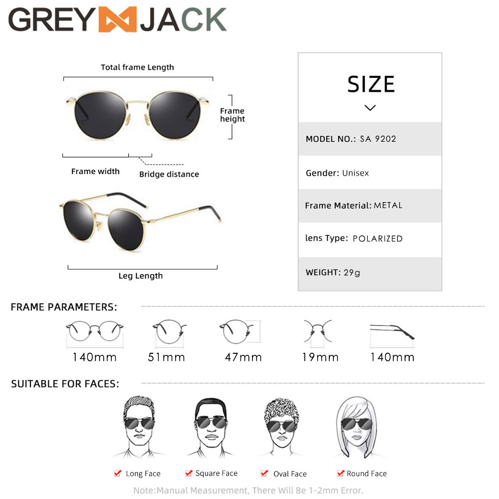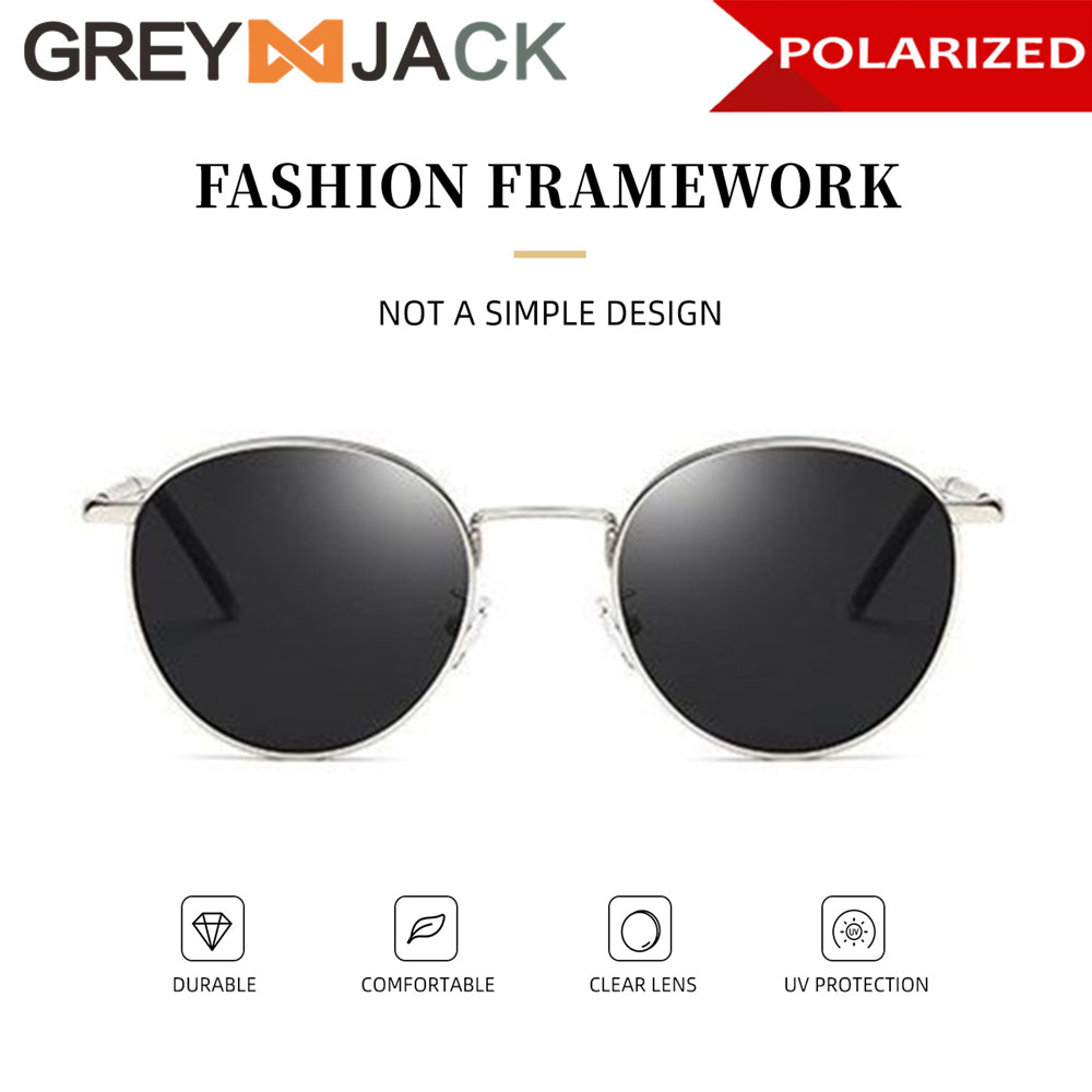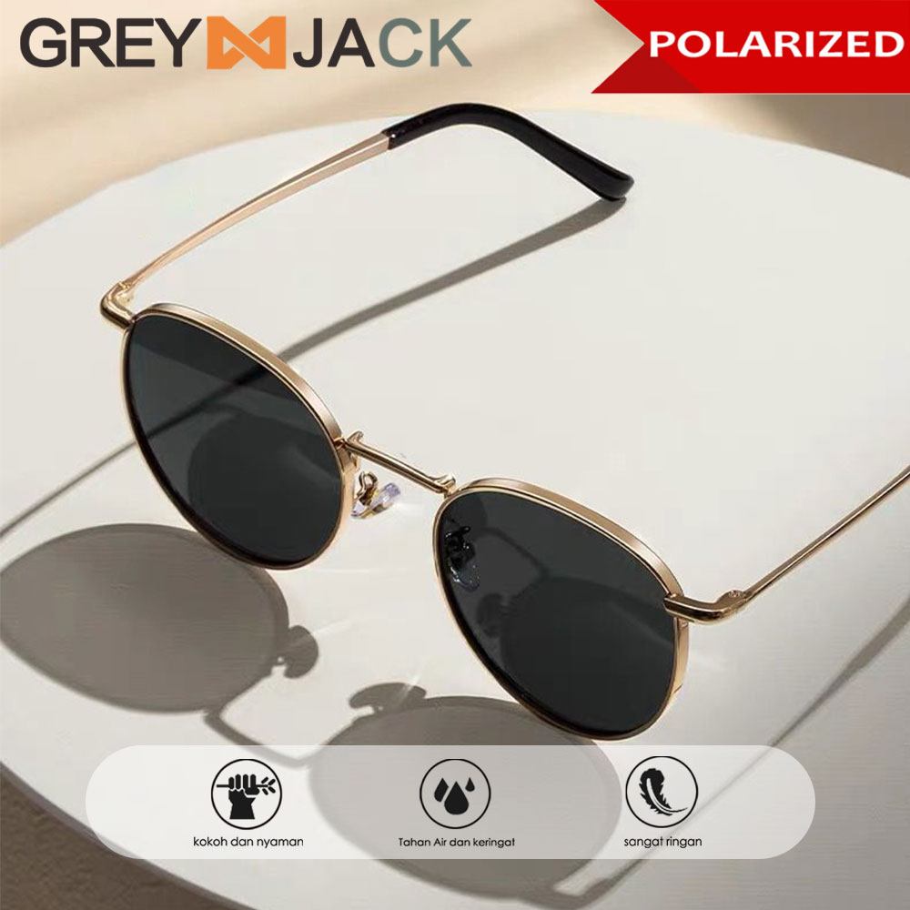 Grey Jack Kacamata Hitam Sunglasses Bulat Bahan Metal Polarized Anti Silau UV400 Fashion Pria Wanita Ringan Keren 9202