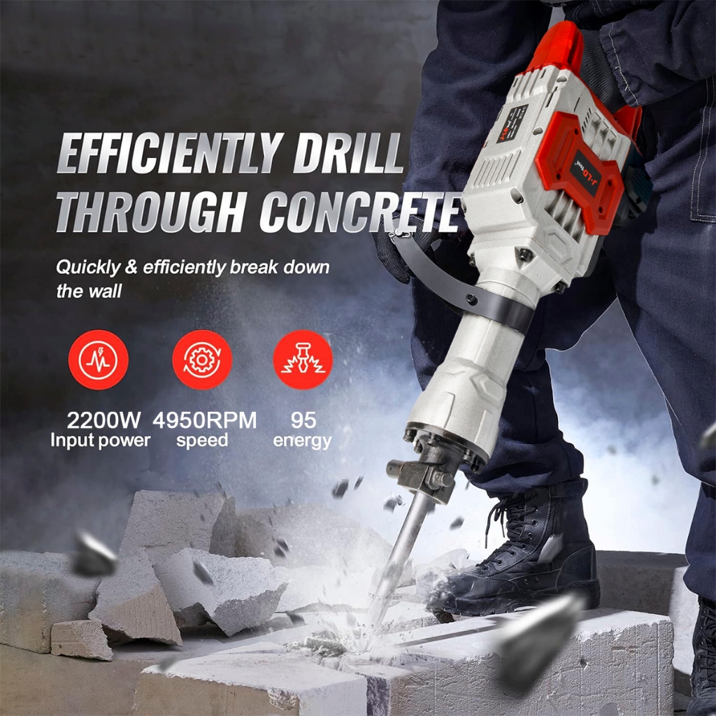 JLD Mesin Jack Hammer Bobok Beton Demolition Listrik Industrial Shockproof 1800W Motor Tembaga High Power Baru Asli Chisel Bits Gratis