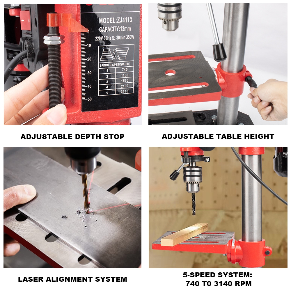 JLD ZJ4113 Mesin Bor Duduk 13MM Bench Drill Press Variable 5-Speeds Cocok Untuk BengkelTasbihDIYMebel Pengeboran Presisi Tinggi