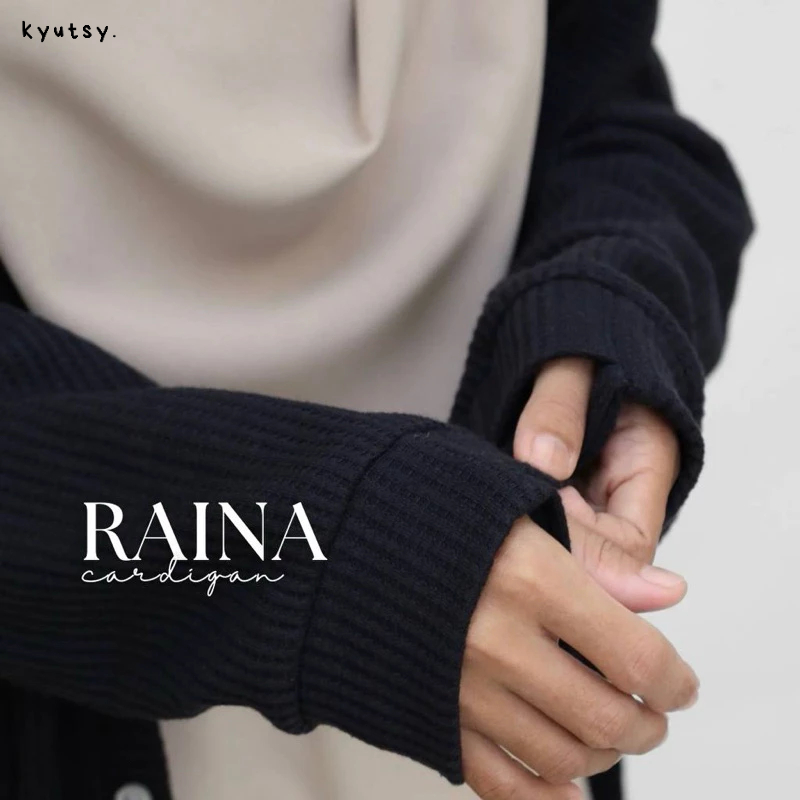 Elmina Raina Cardigan Outer Rajut Long Terbaru 2025 Simple Minimalis Putih Broken White Black Hitam Remaja Polos Elegan