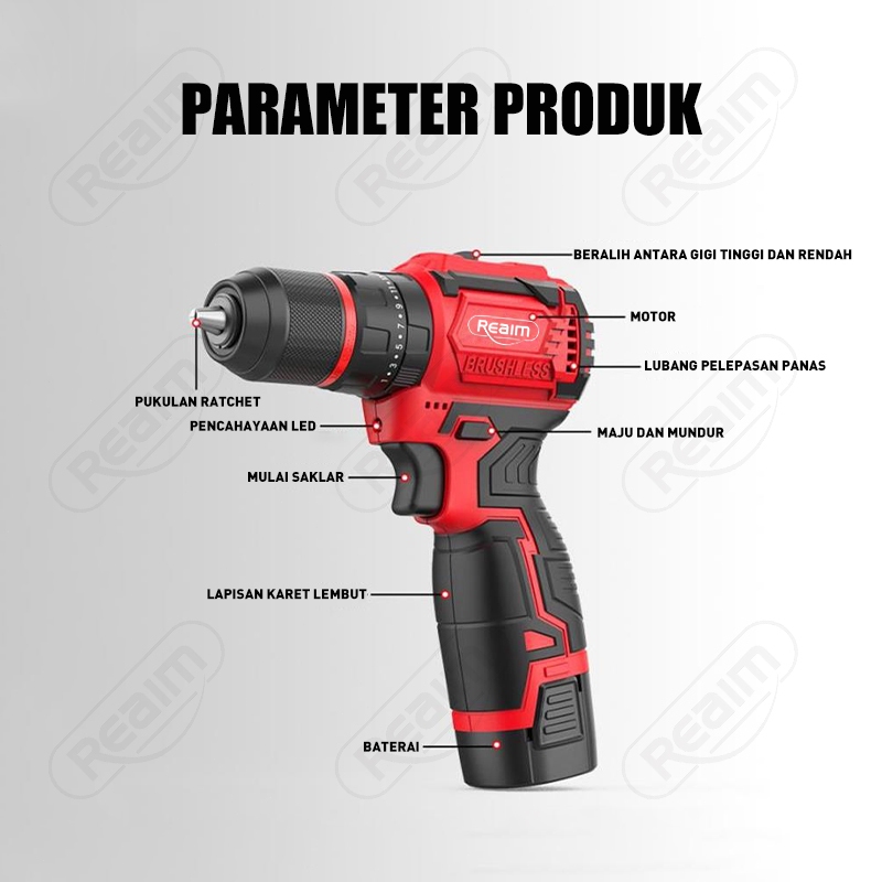 Mesin Impact Bor 198V 3IN1Mesin Bor Bor Baterai Bor Listrik Impact Drill Cordless Electric Drill Impact Besi Kayu Charger Cordless Electric Drill