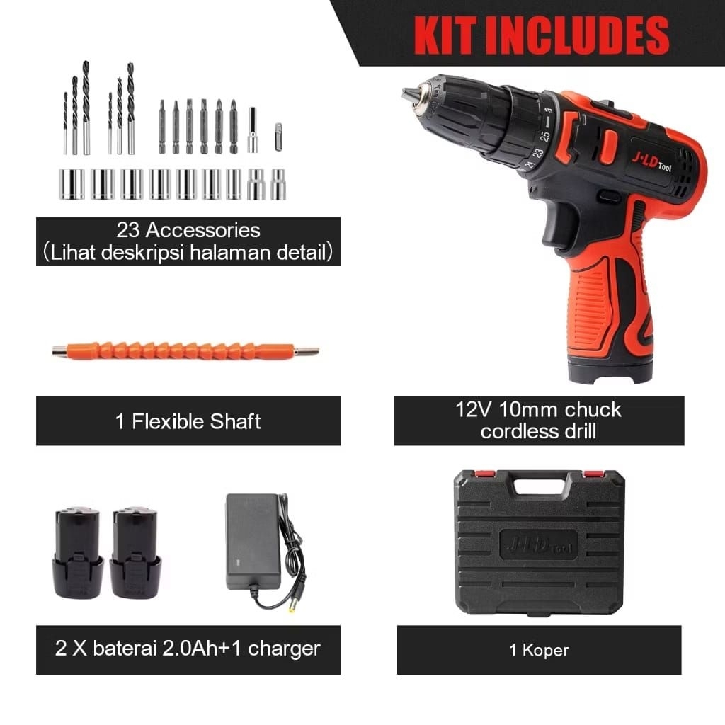 Bor JLD TOOLS Cordless 12v Mesin Bor Baterai cas 10mm Bor baterai bolak balik variable 35N.m Murah