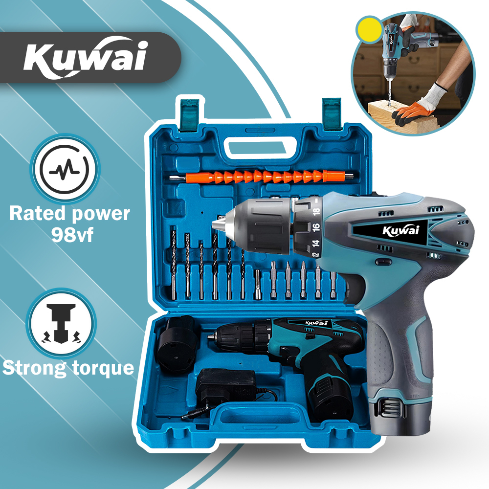 Bor Baterai 2baterai bor cas 1 set lengkap mesin bor tangan Mesin Bor dengan Koper dan Set Mata Bor Untuk Memasang Baut dan Bor Dinding