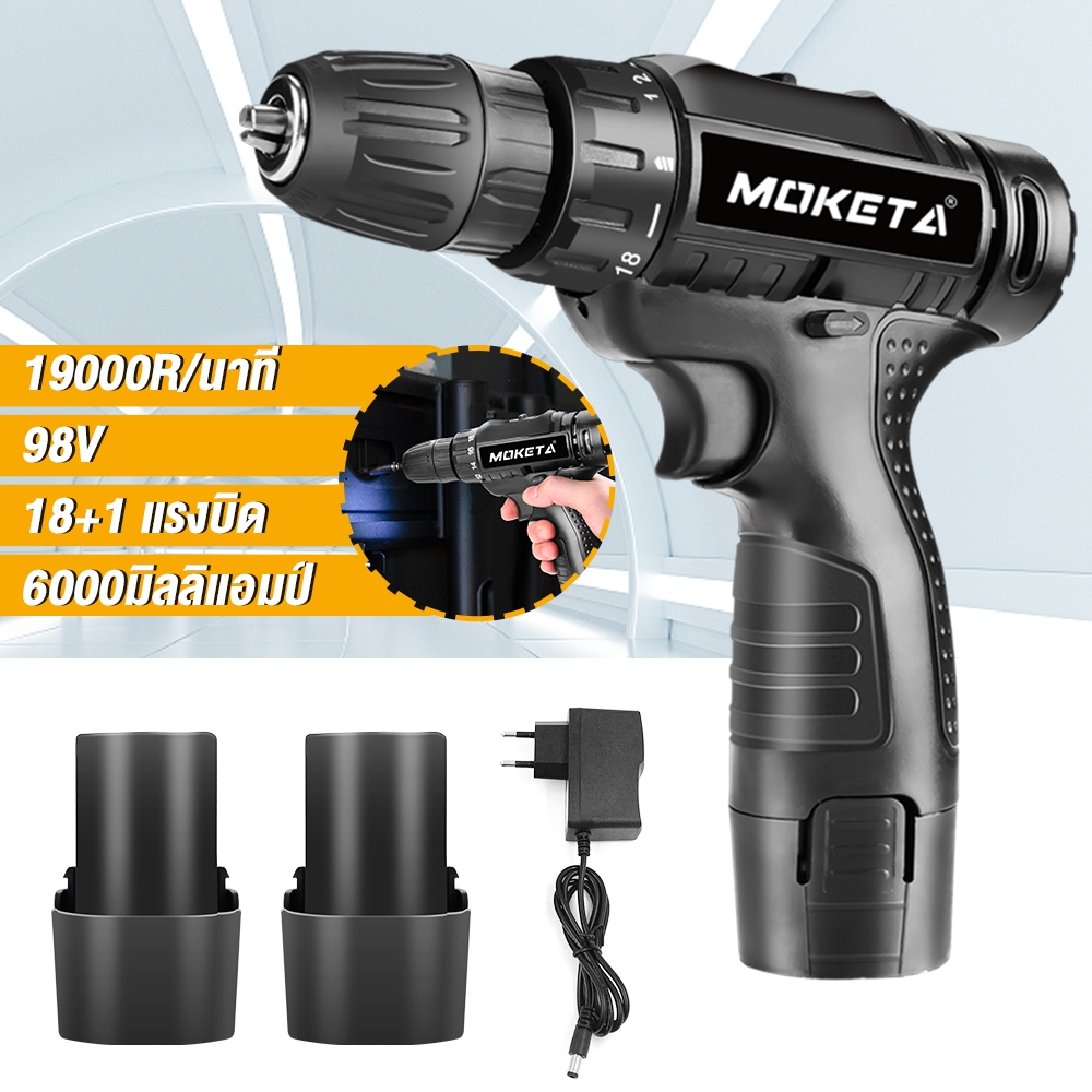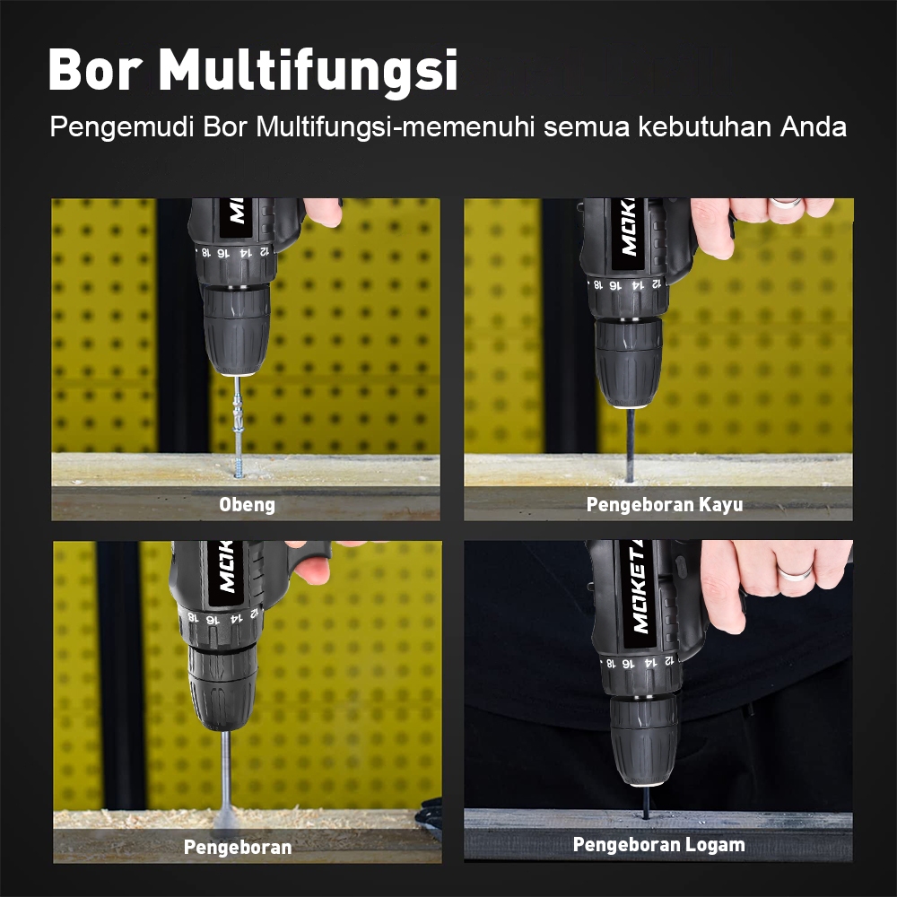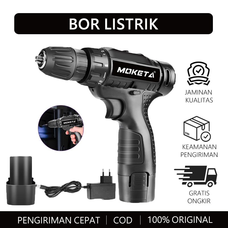 Bor Listrik Moketa 98V Mesin Bor Baterai Tangan Dengan 2 Baterai Cordless Drill Battery Impact Drill Alat Portable Nirkabel Bor Listrik