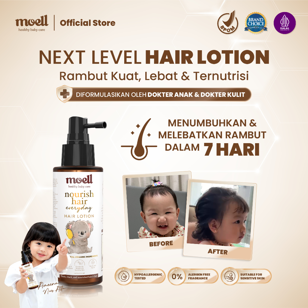 MOELL Special Bundling Body Lotion 185gr & Sunscreen 30gr & Face Cream 40gr & Hair Lotion 100ml ASLI BPOM