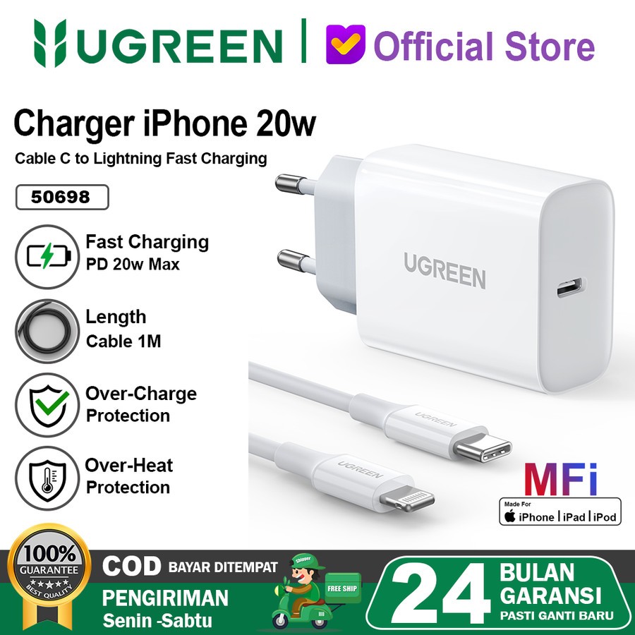 Charger Iphone Ugreen Bundle PD20W Fast Charger Iphone with MFI cable White 50698 ugreen charger iphone bundling