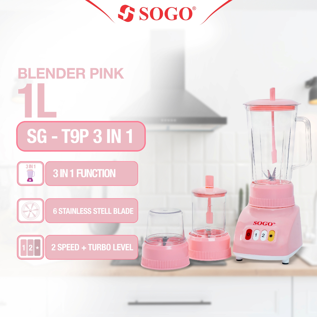 SOGO- Blender Pink/ Ukuran 1L / Plastik Anti Pecah / Stainless Steel / Mesin Halus/ Warna Pink