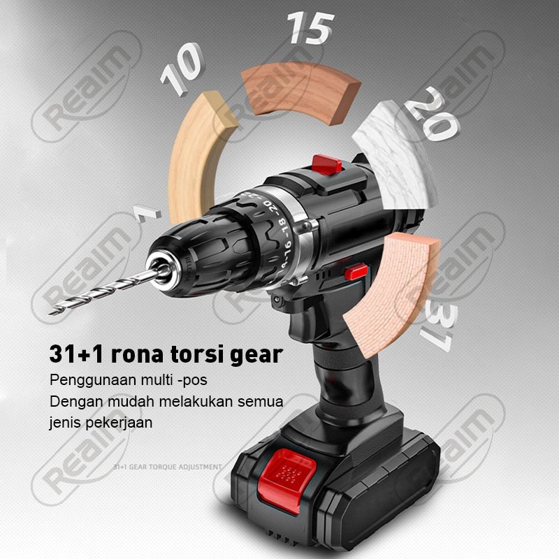 REAIM Mesin Bor Baterai 2IN1 399V Bor Impact & Screwdriver Cordless Ringan untuk Rumah DIY Projects