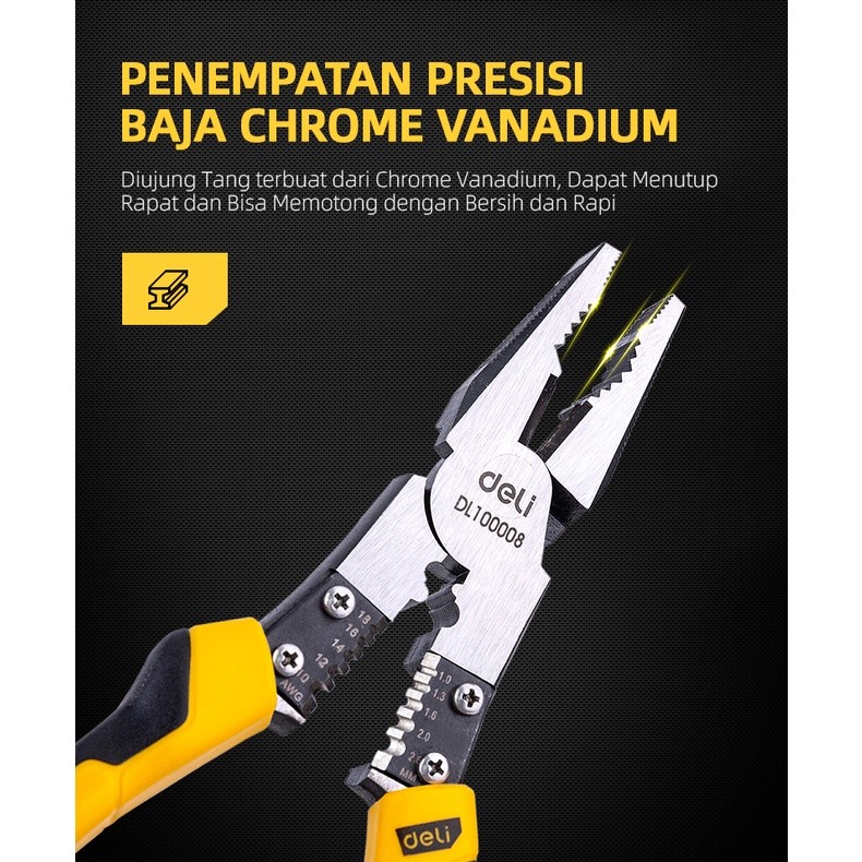 Deli Linesman Pliers/Tang Kombinasi Multifungsi 8.5 inch Chrome vanadium PVC DL100008 /Alat Perkakas