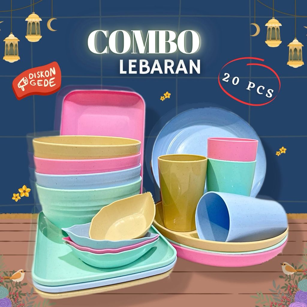 AZ SET 20 PCS PIRING MANGKUK GELAS MANGKOK SAMBAL JERAMI GANDUM PAKET ALAT MAKAN MINUM LENGKAP