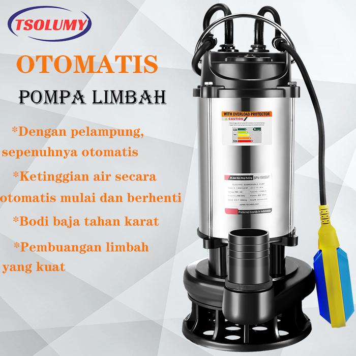 Pompa Air Tsolumy Pompa Celup Air Bersih Kotor 200W-1500W 1.5-2inch Pompa Kolam Ikan Empang Pompa