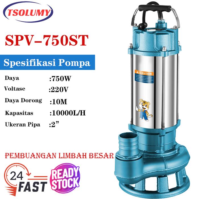 Pompa Air Tsolumy Pompa Celup Air Kotor SPV-750ST/Blue Stainless Submersible Pump 2inch Pompa Sawah