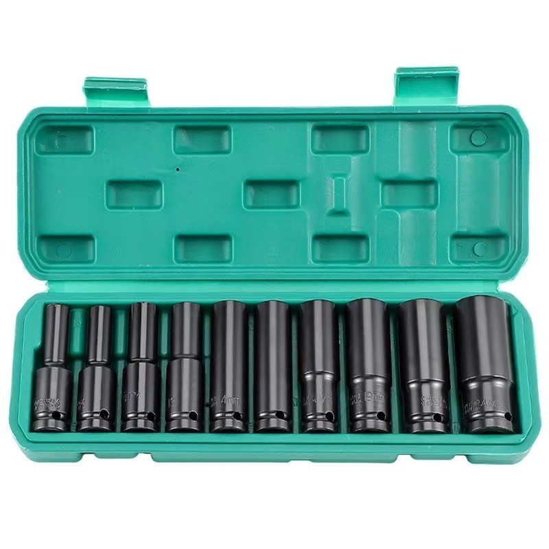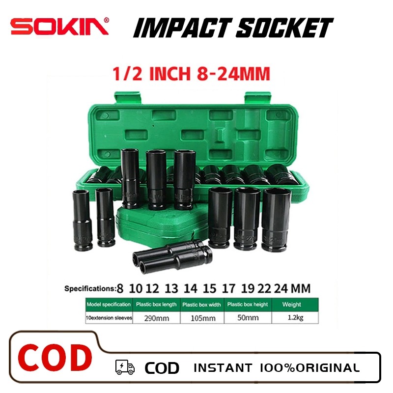 SOKIN 10Pcs Mata Socket 1/2‘’ 8-24mm Impact Socket/Kunci shock multifungsi Heavy Duty Presisi deep impact socket free