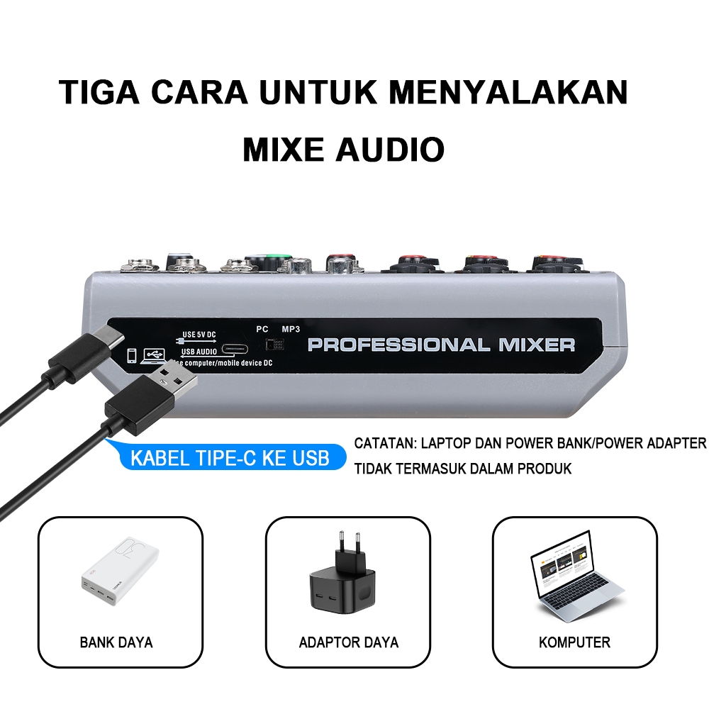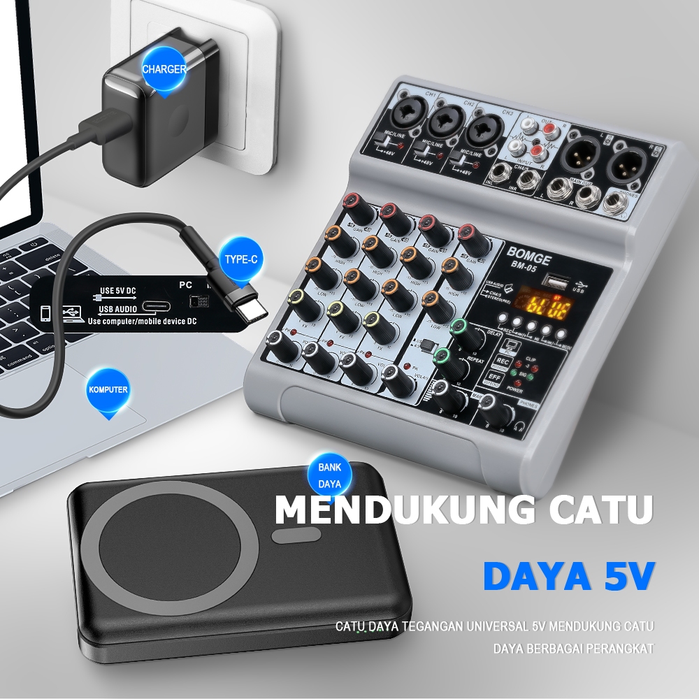 BOMGE BM-05 Audio Mixer, Sound Board Mixing Console With 5 Channel Digital USB