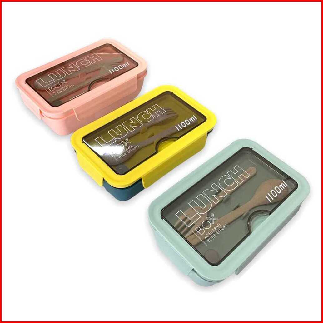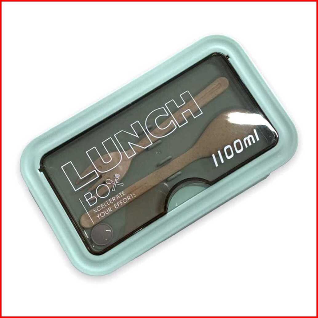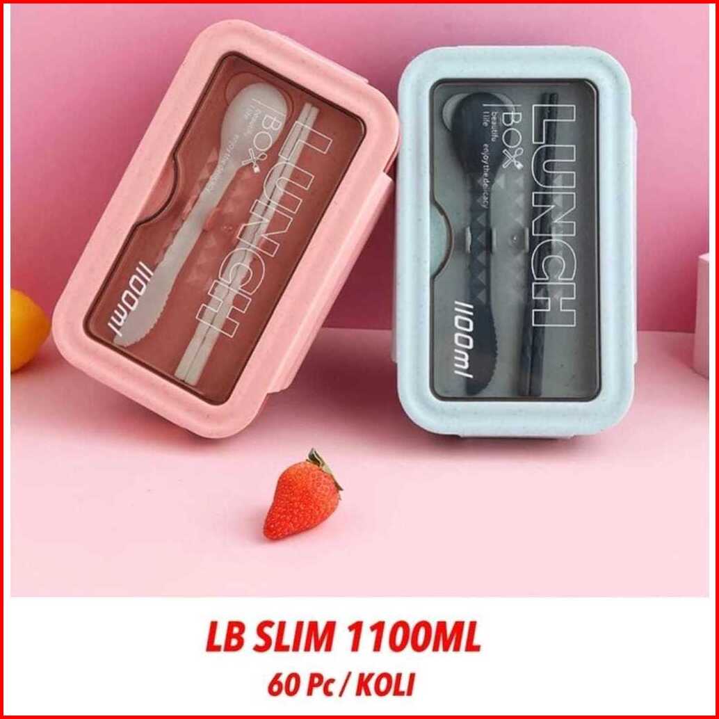 Kotak Bekal Makan Lunch Box Slim Jerami Gandum 1100ml 4in1 Free Sendok Sumpit 105
