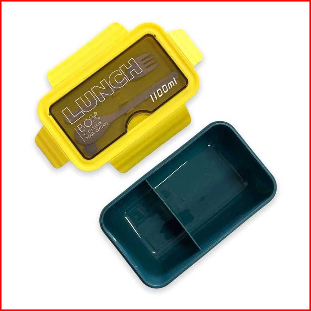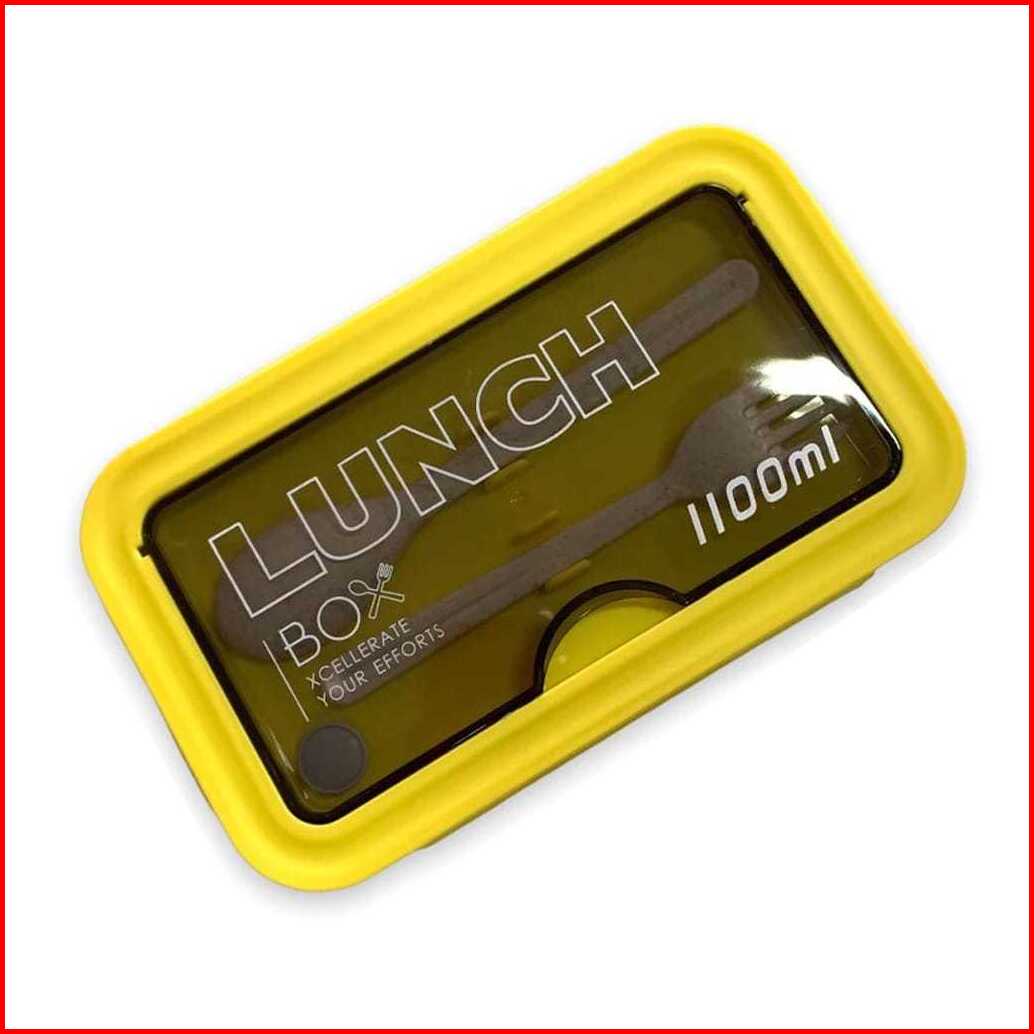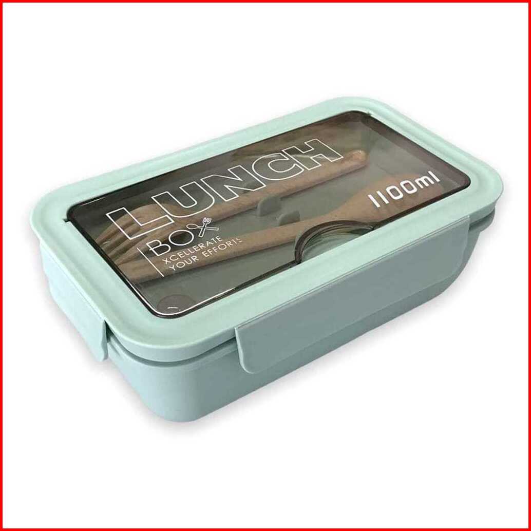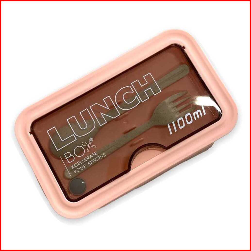 Kotak Bekal Makan Lunch Box Slim Jerami Gandum 1100ml 4in1 Free Sendok Sumpit 105