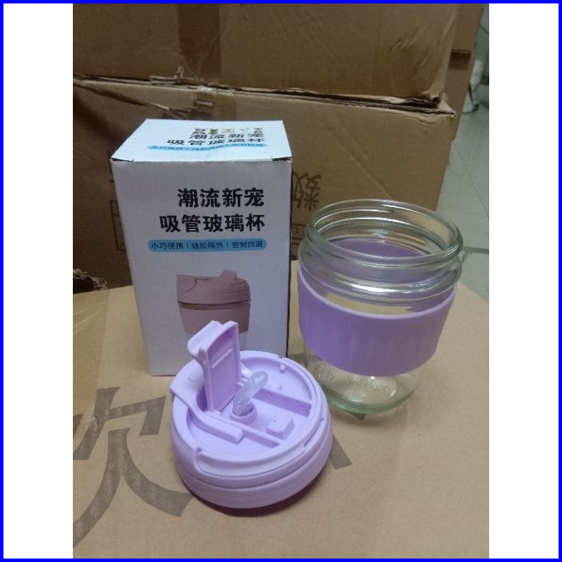 Gelas Tumbler Kaca 350ml Anti Tumpah Dengan Handle