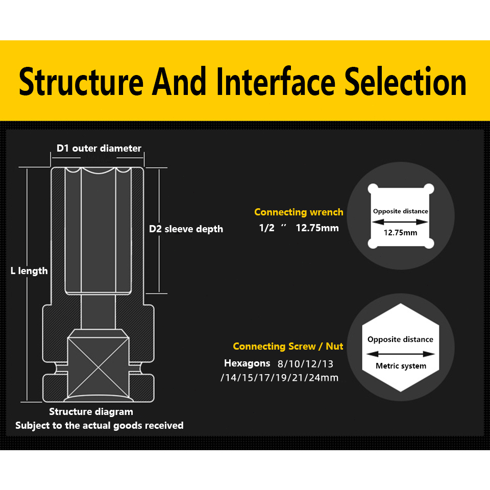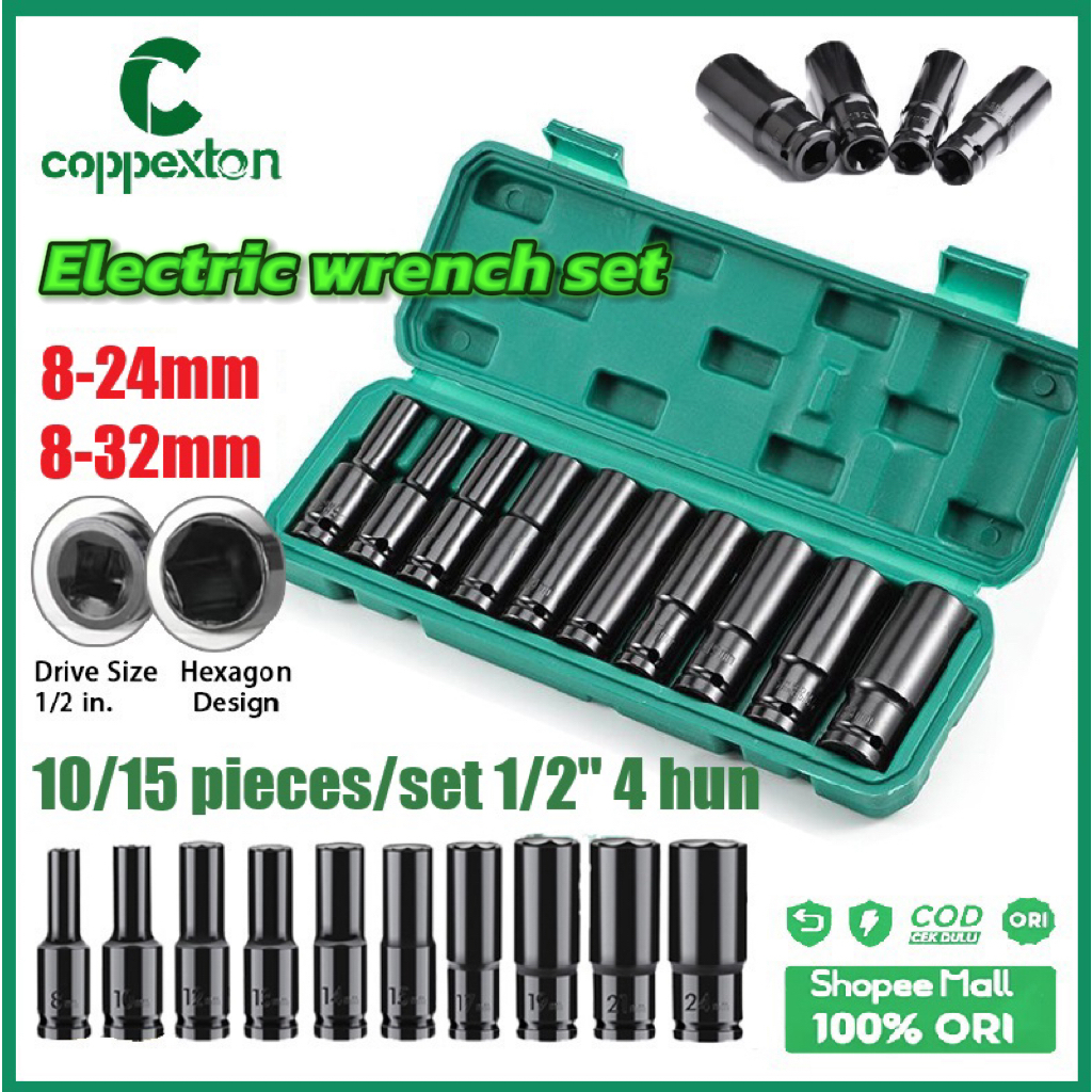 Coppexton 10Pcs Mata Socket 1/2‘’ 8-24mm Impact Kunci Socket/Kunci shock Impact socket set/Impact sock impact wrench Mata