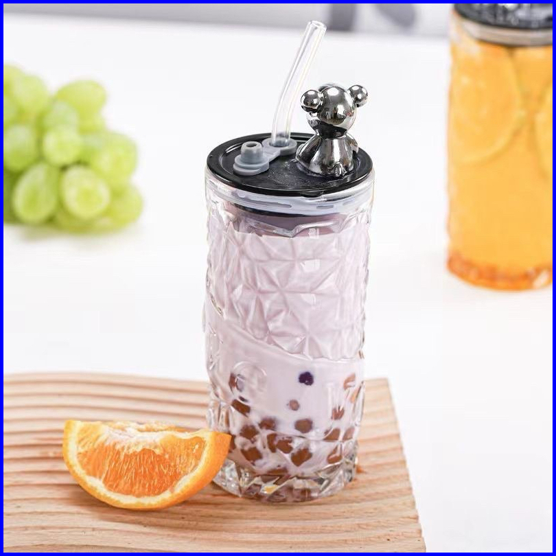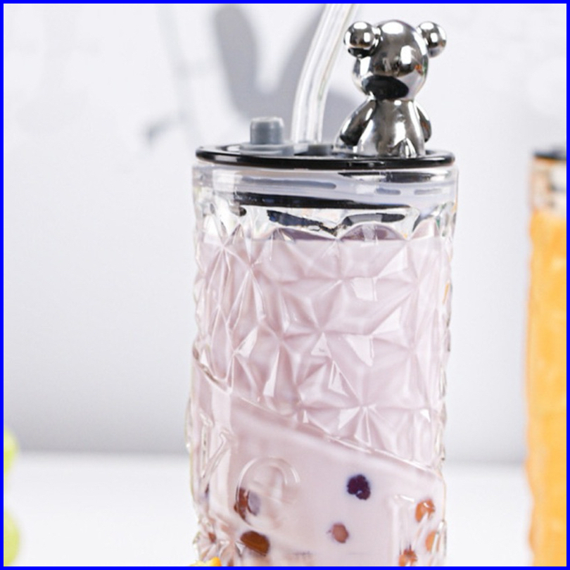 Gelas Susu Gelas Kopi Gelas Teh Mug Tinggi 350ml Dengan Tutup Bentuk Beruang Gelas Kaca Mug Tinggi 350ml