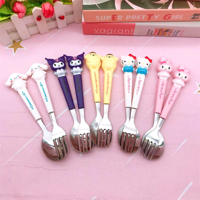 SMP Set Sendok Garpu Alat Makan Anak Karakter Sanrio Peralatan Makan Portable Stainless Steel