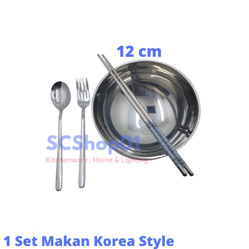 Set Alat Makan Korea Stainless Sendok / Garpu / Sumpit / Korea Bowl