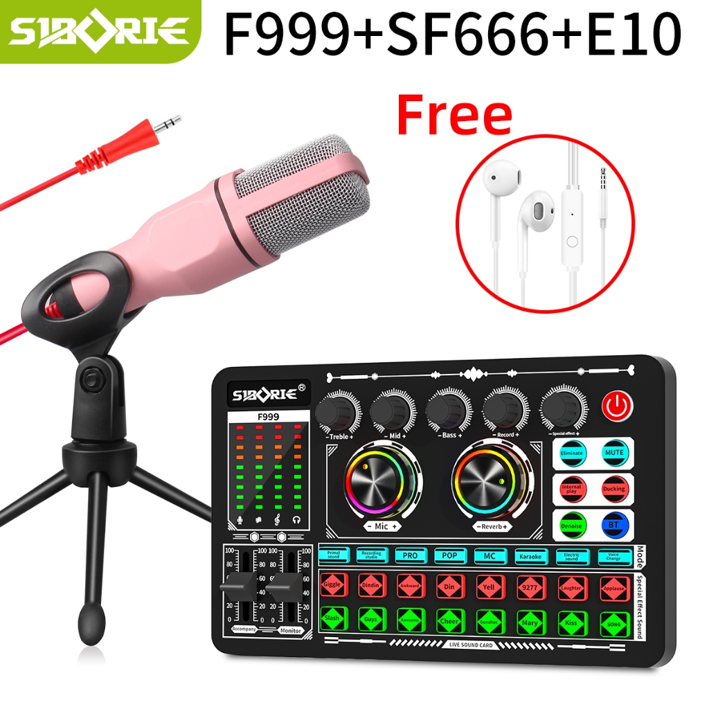 Siborie F999 soundcard+SF666 mic paket lengkap Full SET 100 PERSEN Original Siap cicilan