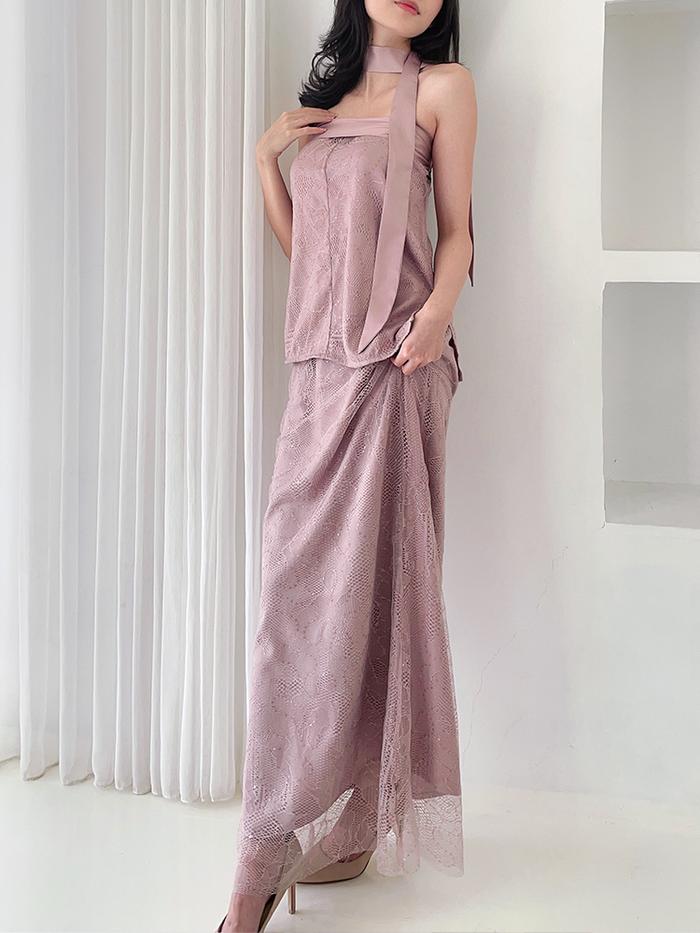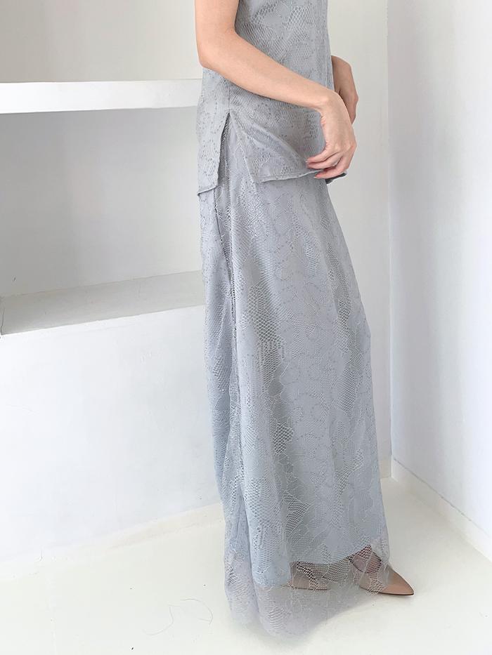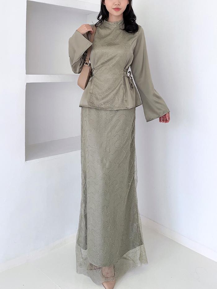 Rok Wanita/Baju Kemeja Wanita Kadaka B-0193 Maxi Skirt Satin Chantilly Lace Rok Panjang Wanita