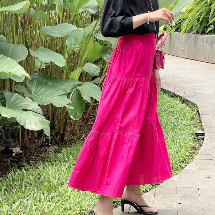 Rok Wanita/Baju Kemeja Wanita Outerres - AREUM SKIRT Rok Linen Wanita Polos Flowy