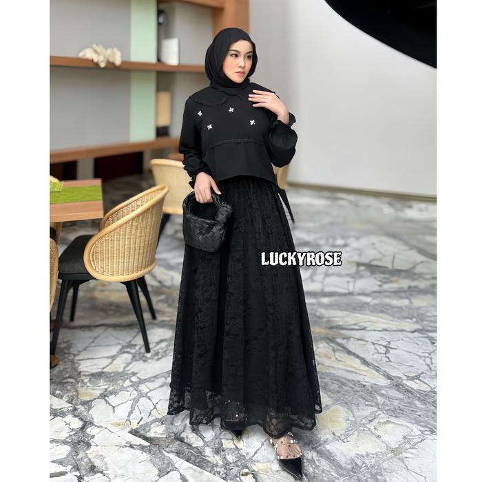 Rok Wanita/Baju Kemeja Wanita Sashi Rok Brukat Renda Lace Panjang Wanita Import Premium Rok Brokat