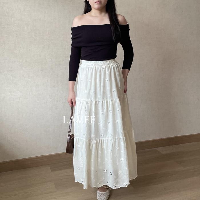 Rok Wanita/Baju Kemeja Wanita LAVEE - Clara Skirt / Rok Embroidery Katbol Bunga - Casual Skirt Maxi