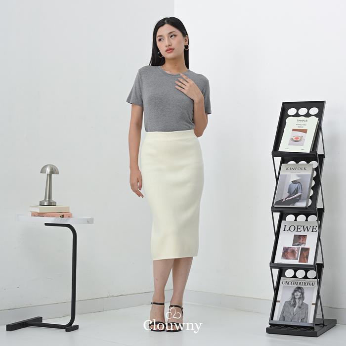 Rok Wanita/Baju Kemeja Wanita Clouwny Betrand Basic Midi Skirt Bawahan Wanita Rok Rajut Premium