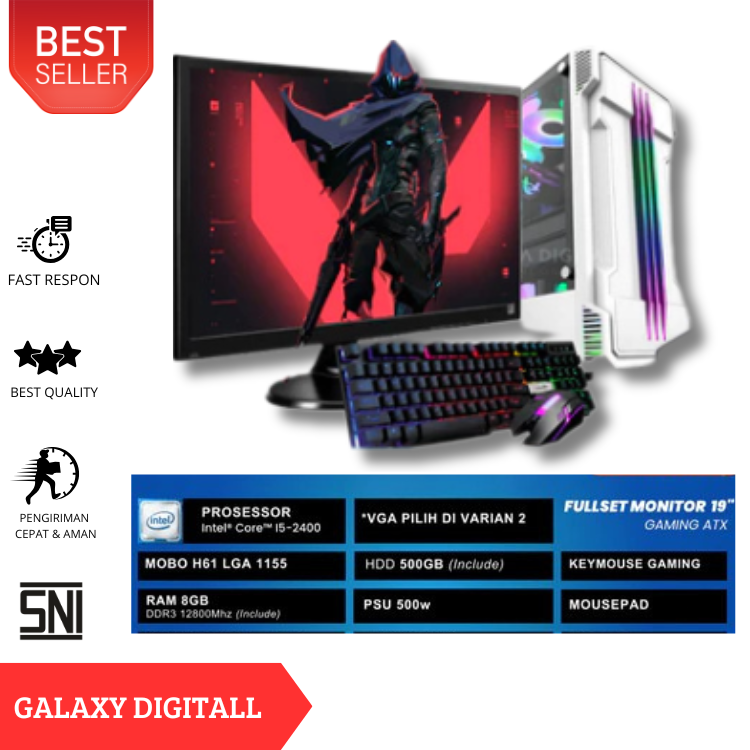 KOMPUTER PC FULL SET INTEL CORE I5 HDD 500GB RAM 8GB VGA 2GB DDR5 MONITOR LED 19INCH LENGKAP SIAP PAKAI MURAH TANPA DP