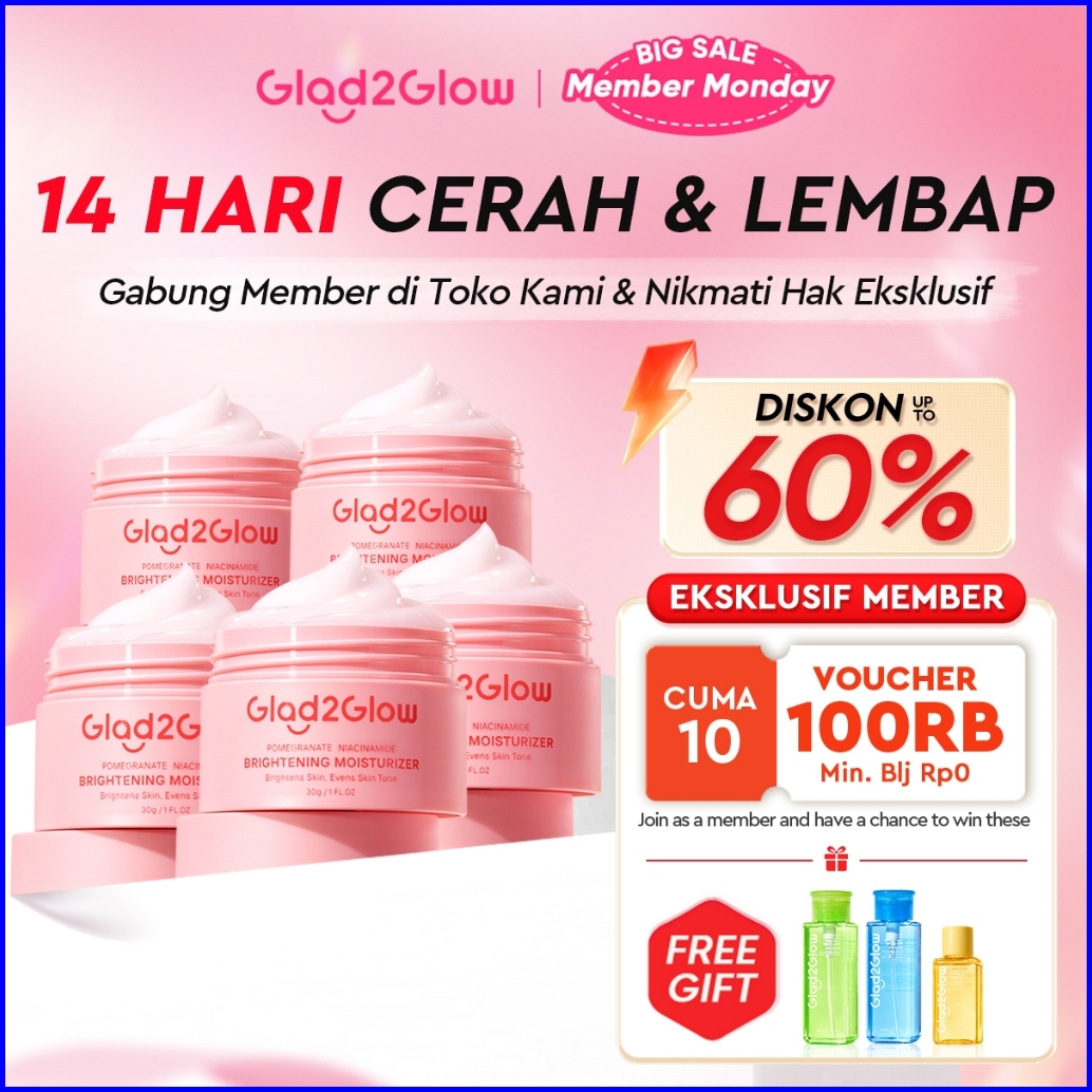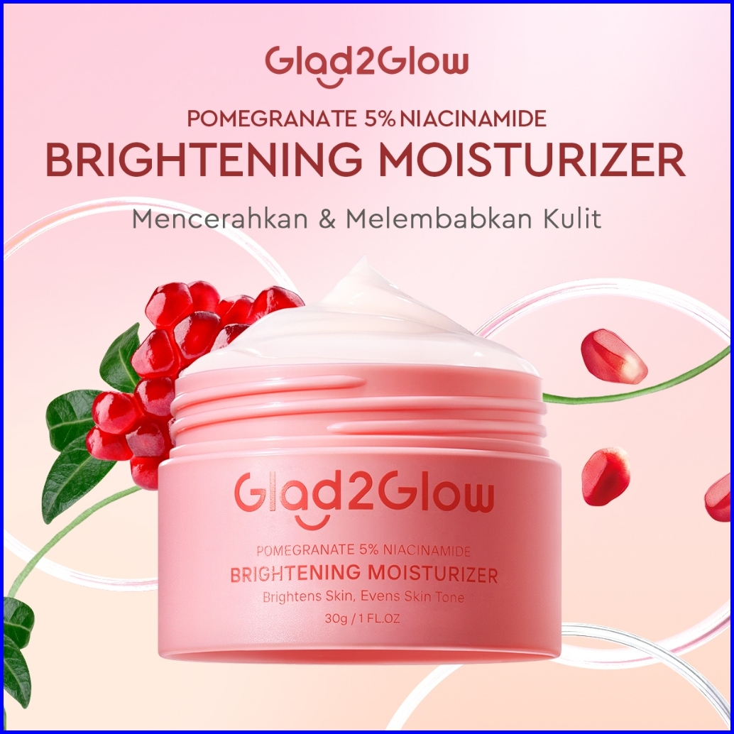 Glad2glow Pomegranate Niacinamide Brightening Moisturizer Mencerahkan Pemutih Kulit Gel Pelembab Bercahaya Krim Siang Da
